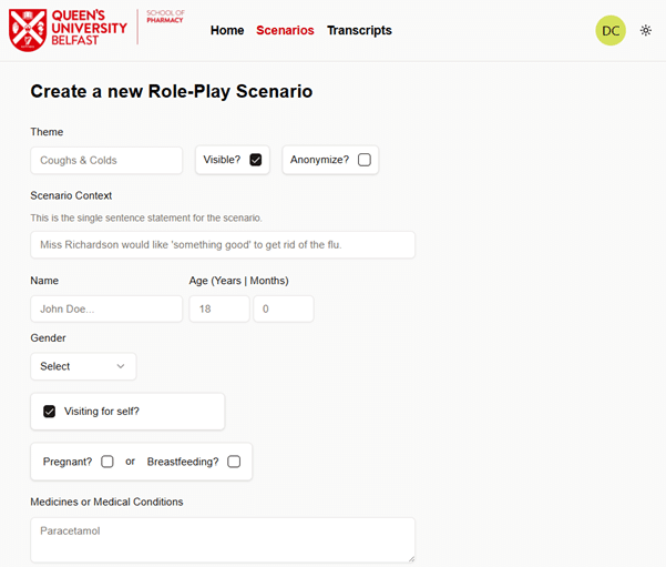 QAIRx has now been integrated into teaching within the School of Pharmacy, and more specifically, within the “Managing Conditions in the Pharmacy” module which forms part of the final level of the MPharm programme. Students have been provided with access to a large number of engaging virtual scenarios which complement the in-person sessions they experience each week in relation to topics such as gastrointestinal conditions, central nervous system issues such as insomnia, children’s health, and others, giving them access to what we believe is a hugely valuable tool to assist their learning, and which also tackles some of the key challenges in the delivery of effective simulated learning.