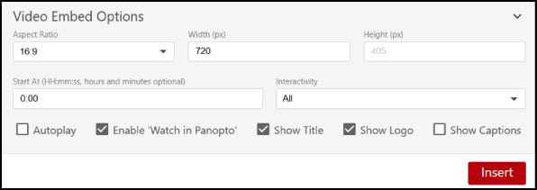 Important: You must follow these steps to embed Panopto videos correctly. Do not try to embed Panopto videos any other way as this can result in access issues for students.