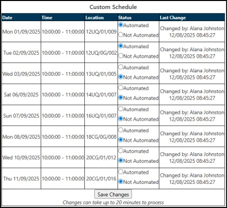 - Review the Custom Schedule to confirm your settings. Click Save Changes