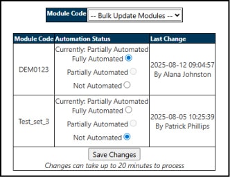 Use this option to quickly update all your modules at once by selecting either Fully Automated or Not Automated.