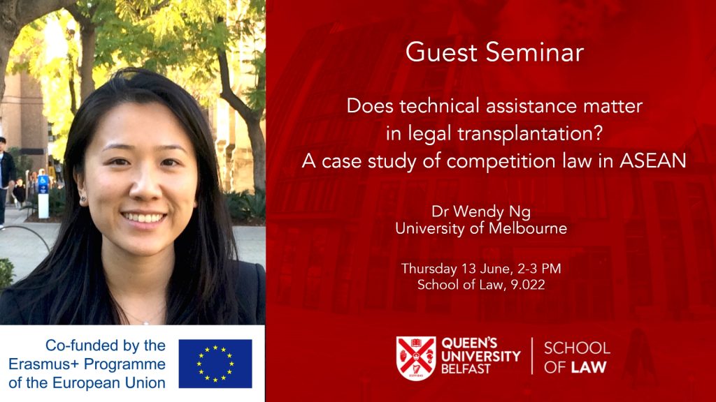 We are looking forward to a visit of Dr Wendy Ng from the University of Melbourne. Wendy is going to deliver a guest talk, entitled ‘Does technical assistance matter in legal transplantation? A case study of competition law in ASEAN’. She will draw from her ongoing empirical project involving numerous interviews in the relevant jurisdictions. We are very happy that Wendy accepted our invitation. It is a rare opportunity to learn more about implementation of competition law within the context of the leading Asian regional integration project.