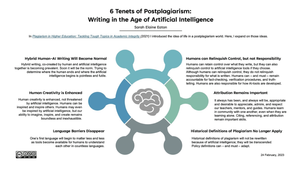 - Eaton, S.E. (2023). Six Tenets of Postplagiarism: Writing in the Age of Artificial Intelligence. University of Calgary.