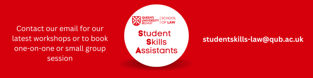 Email studentskills-law@qub.ac.uk to book a one-to-one or small group session.