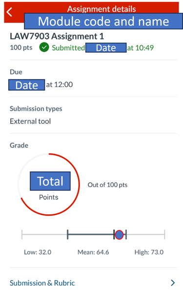 Assignment comments are located within your assignment on Canvas. These comments provide a general overview of what the assignment does well, where the assignment is less successful and points for future assignments. The grade out of 100, which relates to the conceptual equivalent scale, is also included in this section of Canvas.