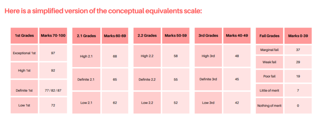 The University uses a conceptual equivalents scale for the assessment of student work. The use of the conceptual equivalents scale is mandatory for assignments that do not have clearly defined right and wrong answers. These types of assignments, such as essays, are often used to assess modules in AHSS.