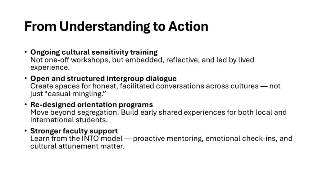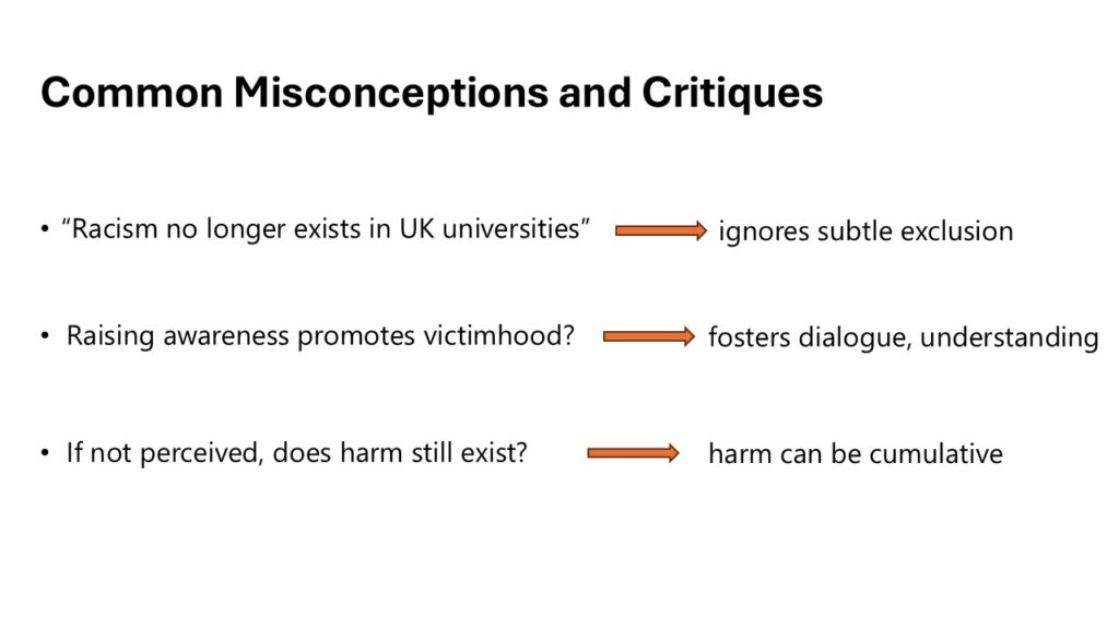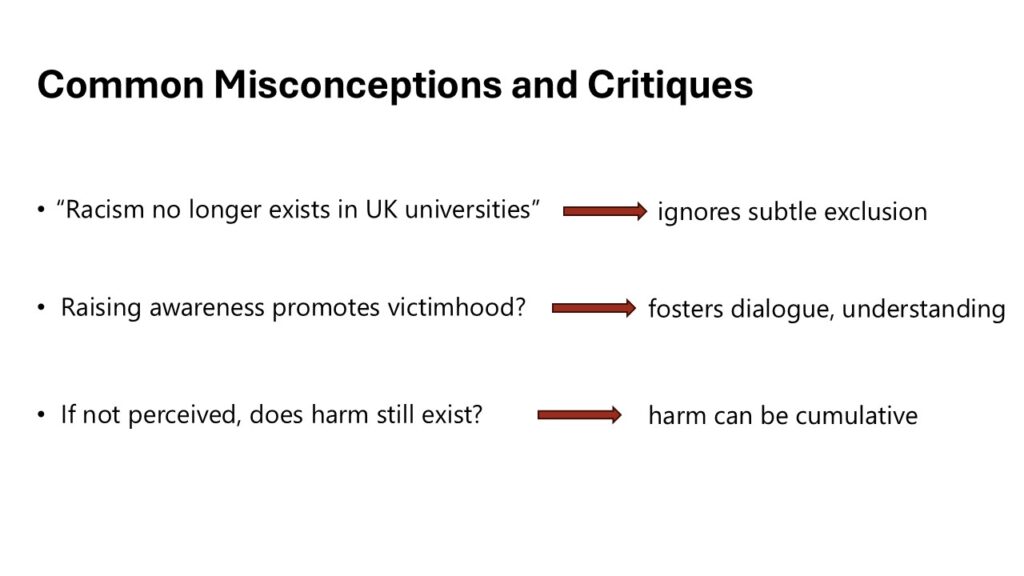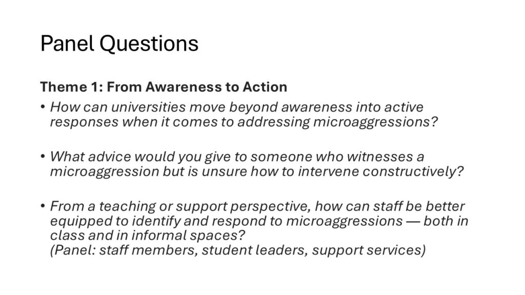 A panel of academic, professional, and student representatives further contributed to the discussion, offering conceptual insights and practical strategies to strengthen inclusion, foster belonging, and address microaggressions across the institution.