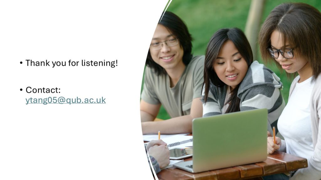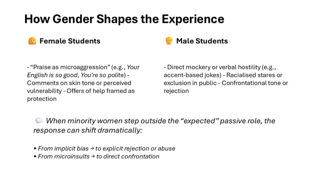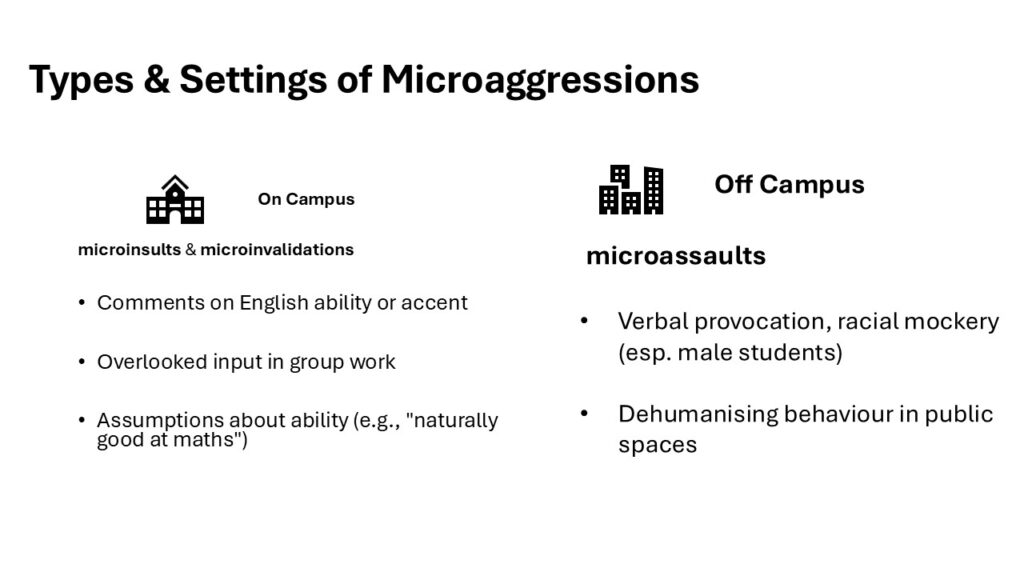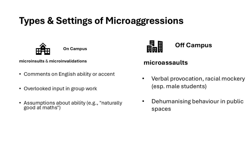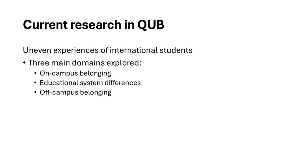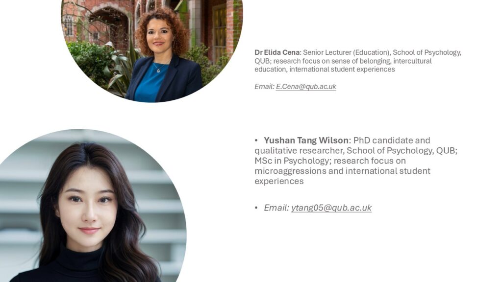 Led by Dr Elida Cena and her research student Yushan Tang Wilson from the School of Psychology, the session explored the lived experiences of Chinese and Indian students at Queen’s, examining how microaggressions and cultural dynamics shape their sense of inclusion and belonging within the university community.