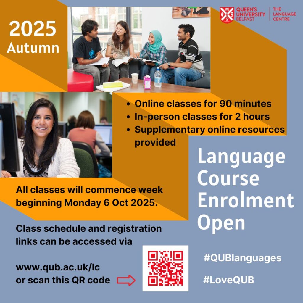 Jointly organised by The Language Centre and iRise (BAME&I) Staff Network, the event featured welcoming remarks from Thomas (Language Centre Manager) and Bee-Yen (Senior Lecturer, School of Electronics, Electrical Engineering and Computer Science; Co-Chair of iRise), who both reflected on the cultural importance of celebrating diversity at Queen’s. Mórrigan (Student Officer for Accessible Education) and Claudia (Chair of the International Students’ Association) also spoke, introducing the roles of the Queen’s Students’ Union in supporting a student body representing over 80 countries and regions.