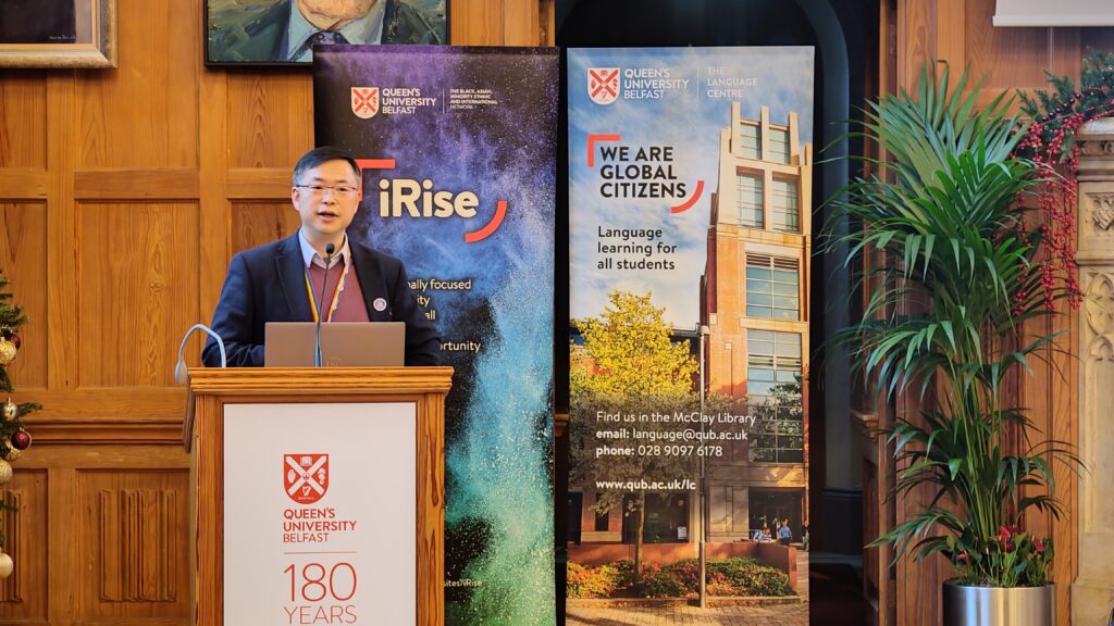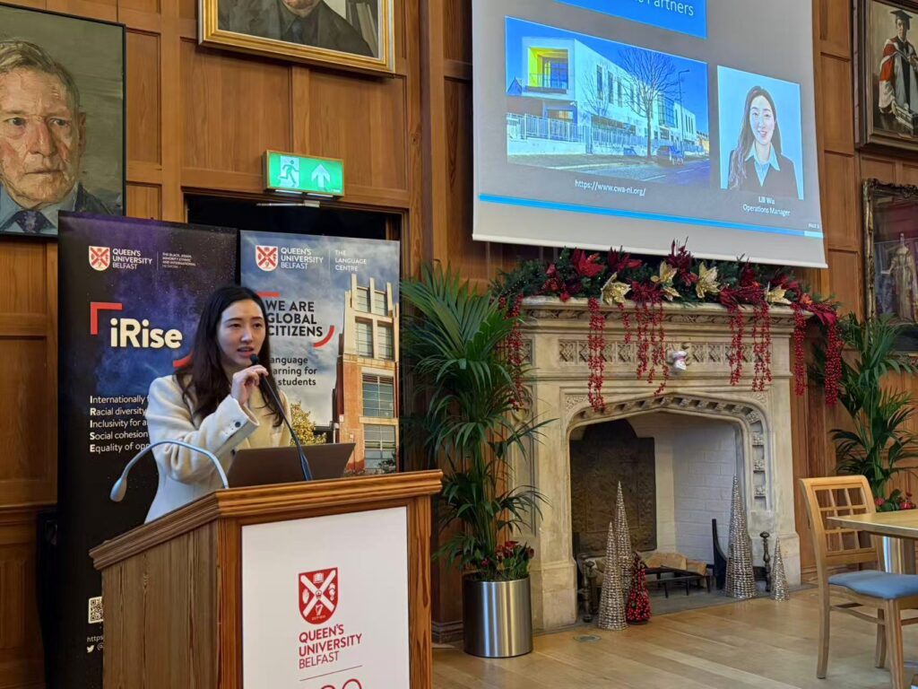 Dr Liang Wang (Queen’s Language Centre; QUB iRise Staff Network) introduced International Volunteer Day and highlighted Queen’s commitment to student volunteering. Guest speaker Lili Wu (Chinese Welfare Association NI) encouraged participants to get involved in local volunteering, reflecting on how her own experiences at Queen’s shaped her career journey.