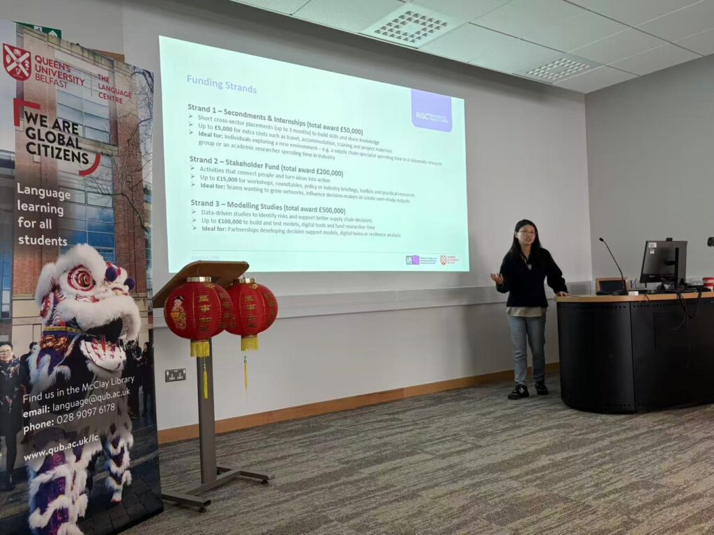 Dr Hangfei Guo (郭杭飞) is a Reader in Supply Chain Management at Queen’s Business School and the Principal Investigator for UKRI RiSC+, ReImaging Supply Chains Network Plus. Hangfei’s role is to lead RiSC+ in generating innovative research, building partnerships, and developing capacity to strengthen the UK’s supply chain resilience across food, critical minerals and fashion themes. Her research focuses on data-driven decision-making and supply chain management, combining analytical and empirical approaches to address real-world supply chain challenges.