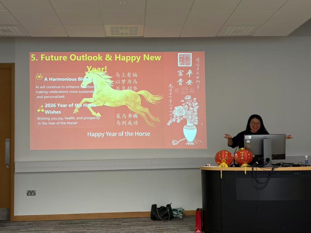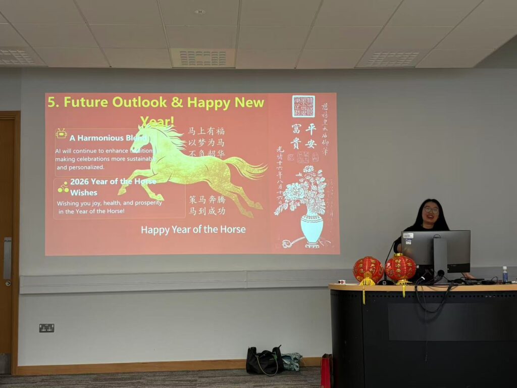 Spring Festival (Chinese New Year) is China’s most important festival, centred on family reunion and good wishes for the new beginning. Some of its traditional activities include preparing Laba Porridge, decorating with red symbols, family feasts, and temple visits. The talk shows how AI is transforming these traditions, from improving food preparation and reducing waste, to offering personalised health recommendations and supporting smarter shopping, travel, and dining arrangements. It also highlights how AI is increasingly used in areas such as healthcare, transport, tourism, and festive event management, as well as in offline experiences like smart shopping centres and digital cultural tours. Looking to the future, the talk considers new possibilities including AI-supported sustainability and digital community support. Overall, it argues that AI does not replace tradition, but enhances it—making Chinese New Year celebrations more efficient, sustainable, and personalised while preserving their cultural meaning.