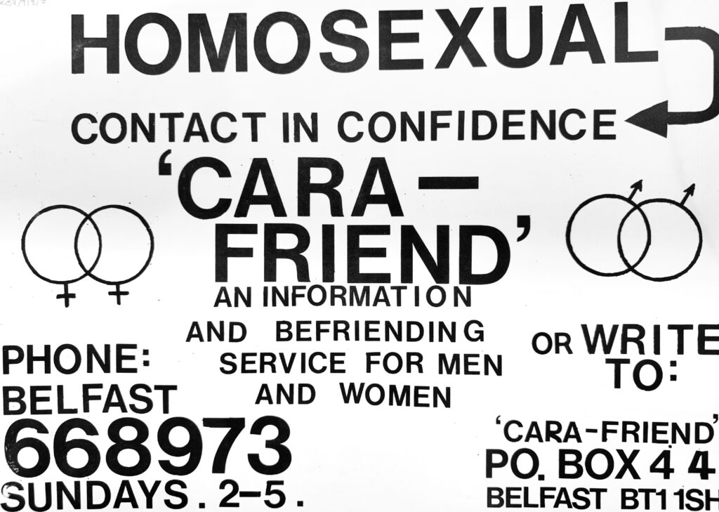 To celebrate LGBTQ+ History Month this February, we are proud to host an exhibition on the history of Cara-Friend, a charity dedicated to supporting the LGBTQ+ community in Northern Ireland.